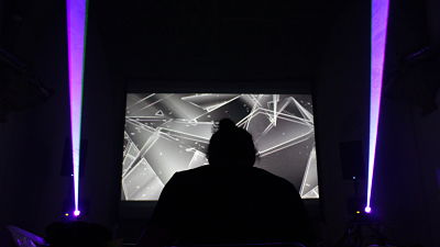 Audiovisual performance generated from mutable algorithms for the synthesis of audio, video and light manipulation in real time. It consists of a four-way sound specialization system, a video channel and lasers projection.