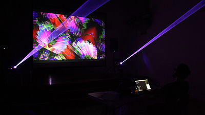 Original idea, programming, audiovisual set design, lasers controlling and live performance: Luciano Rodríguez / Production assistant: Natalia Vázquez